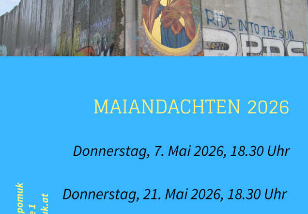 Maiandachten Wir feiern Maiandachten an den Donnerstagen im Mai um 18.30 Uhr (außer an Feiertagen). Maria ist in der „Gemeinschaft der Heiligen" mit der Kirche verbunden. Es entspricht alter katholischer und orthodoxer Frömmigkeitspraxis, [...]