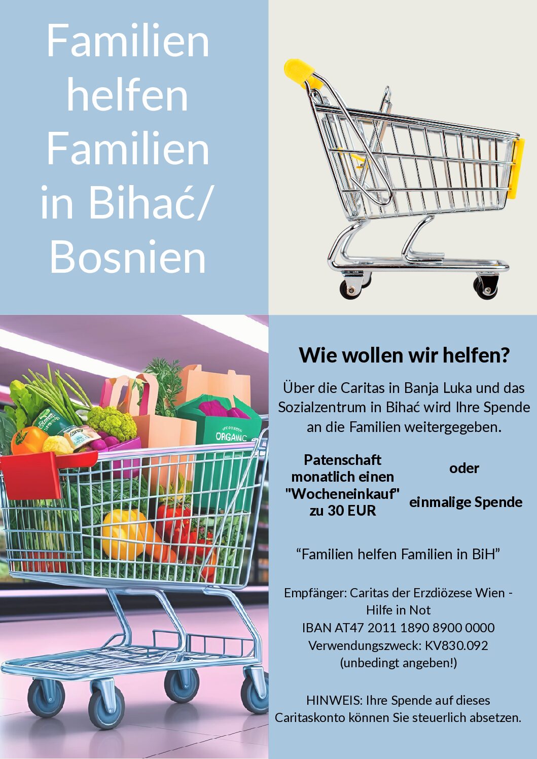 Ich spende einen vollen Einkaufskorb für eine Familie in Bihac.