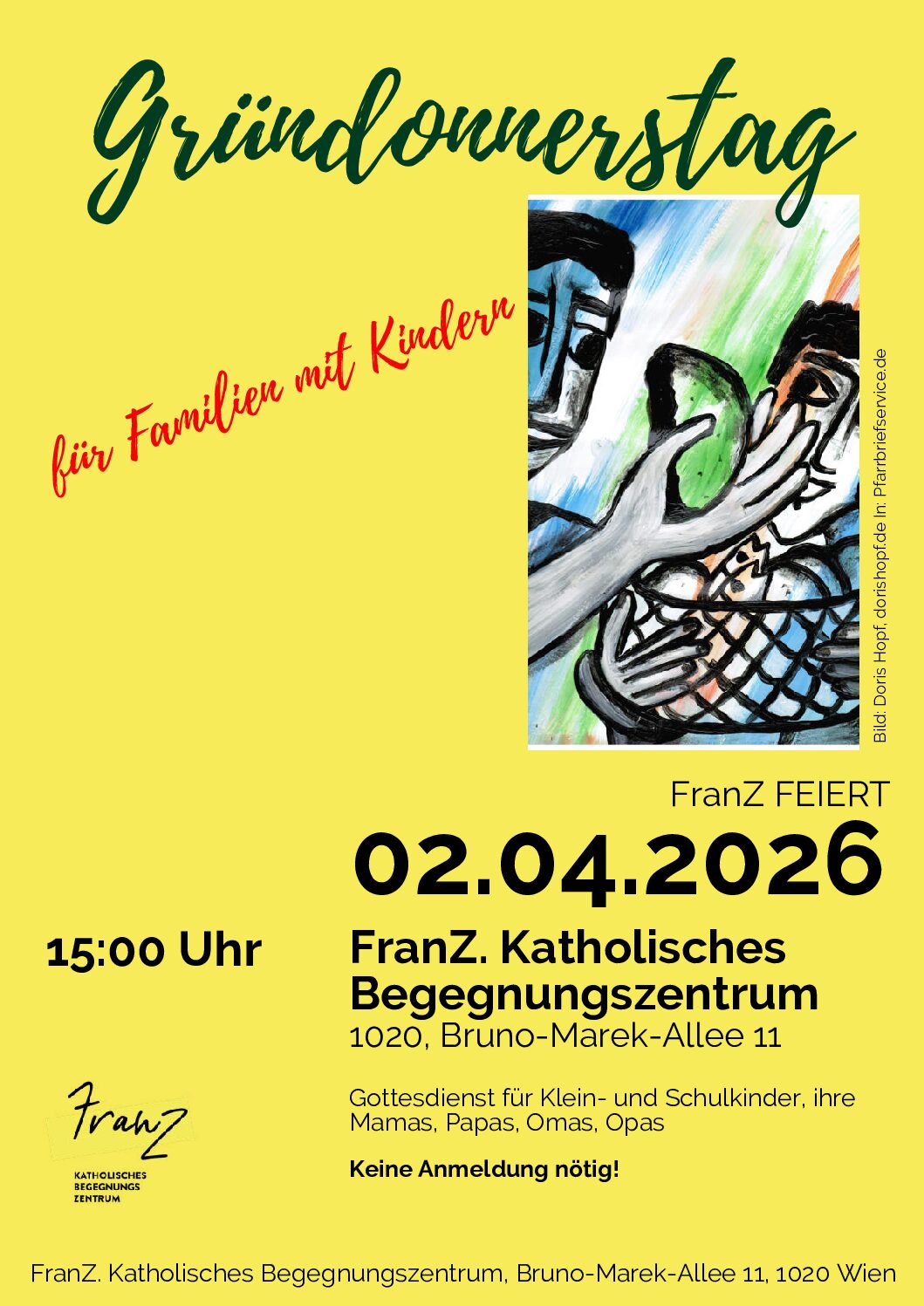 Am Gründonnerstag, den 2.4.2026 feiert FranZ um 15:00 einen Gottesdienst für Klein- und Schulkinder, ihre Mamas, Papas, Omas, Opas, …
